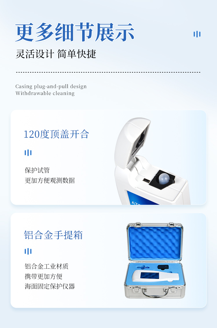 體驗更好 —— 試子套管采用插拔式靈活設(shè)計,可定期清洗長期使用,延長儀器壽命。