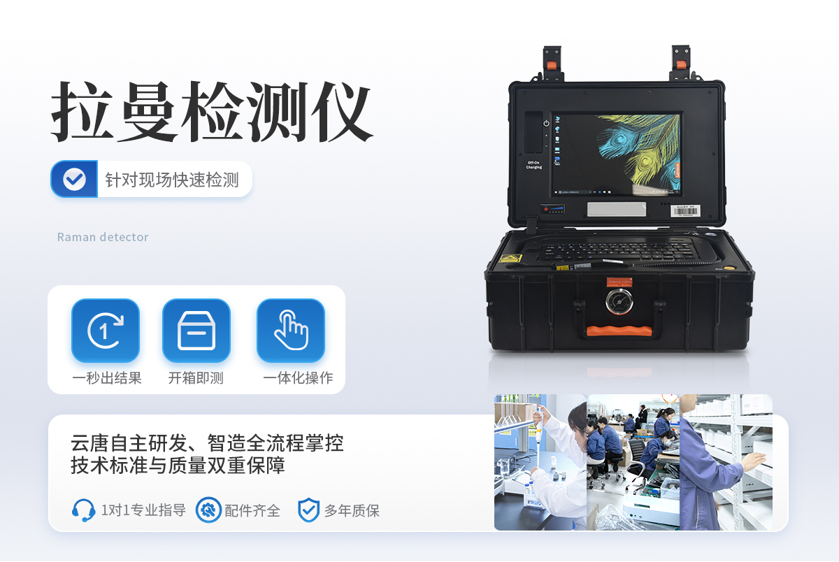 更專業(yè) 785nm光源:有效抑制熒光,適合便攜式移動應(yīng)用 超寬的光譜范圍:檢測物質(zhì)種類更多 更高的信噪比:超強的微小信號探測能力 優(yōu)質(zhì)激光光源:數(shù)字可調(diào)高功率輸出,窄線寬保障譜圖質(zhì)量 更便捷 光學(xué)聚焦設(shè)計:可以隔著塑料袋、玻璃瓶直接檢測 快速自穩(wěn)定光源:機器啟動無預(yù)熱時間,即開即用 超快檢測速度:一秒出結(jié)果 便攜式設(shè)計:獨立可充電電源供電,隨裝隨走,適合各種現(xiàn)場快檢 更貼合應(yīng)用 在線譜圖庫:提供各行業(yè)應(yīng)用多維譜圖庫,支持在線升級 專業(yè)分析算法:智能解譜,自動匹配,多組分分析 行業(yè)應(yīng)用軟件:提供針對行業(yè)專用軟件,支持客戶訂制