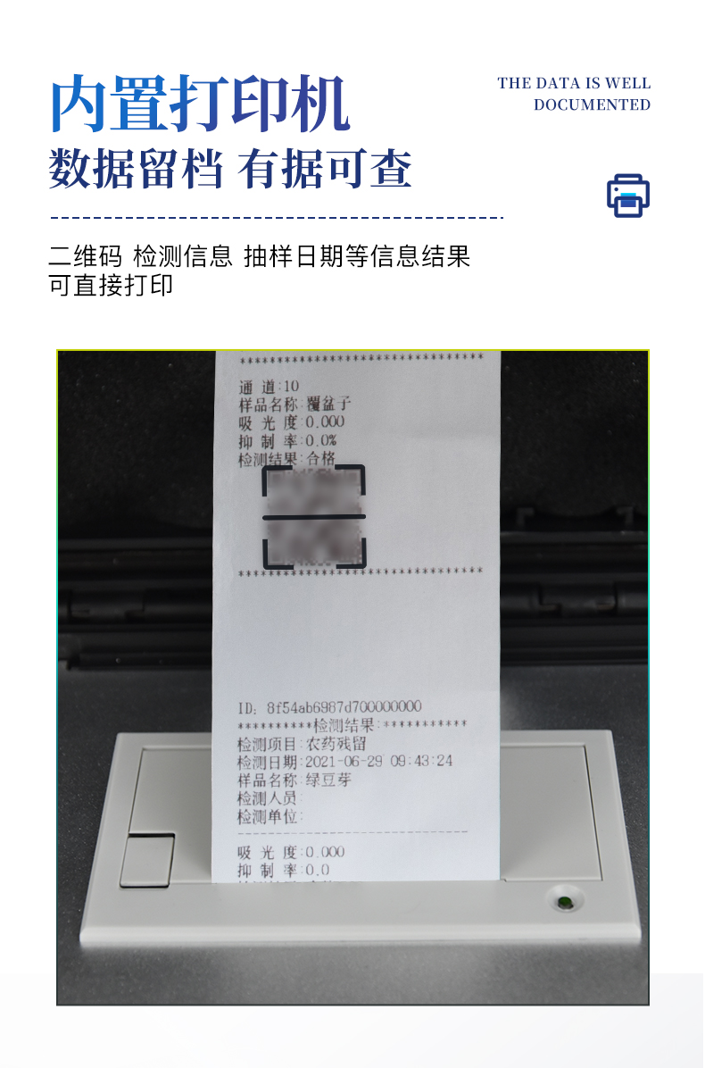 7、新一代高速熱敏打印機(jī),檢測(cè)完成可自動(dòng)打印或批量打印檢測(cè)報(bào)告和二維碼。