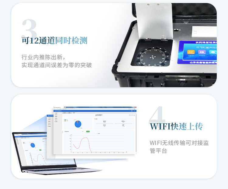 3、儀器帶有監(jiān)管平臺,數(shù)據(jù)可局域網(wǎng)和互聯(lián)網(wǎng)數(shù)據(jù)上傳,檢測結(jié)果直接傳至食品安全監(jiān)管平臺。進行區(qū)域食品安全監(jiān)管及大數(shù)據(jù)分析處理與數(shù)據(jù)統(tǒng)計,檢測區(qū)域食品安全長短期動態(tài),達到食品安全問題預估、預警 。
