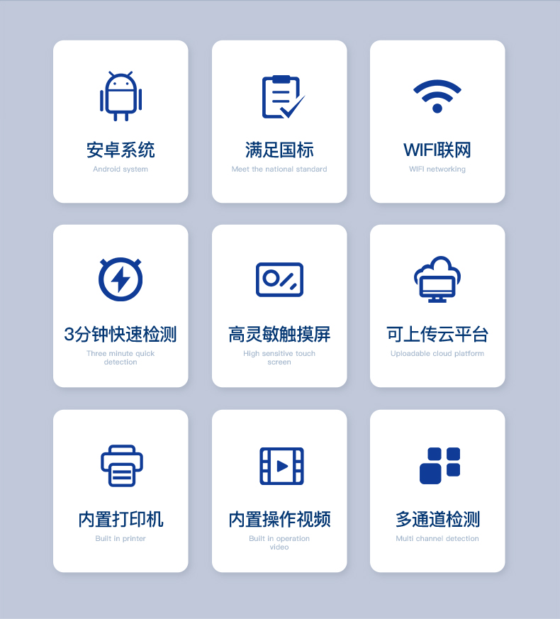 6、檢測通道:8個(gè)檢測通道,可以同時(shí)測試多個(gè)樣品,循環(huán)檢測,即放即檢,每個(gè)樣品由程序控制分別獨(dú)立工作,不會(huì)互相干擾。