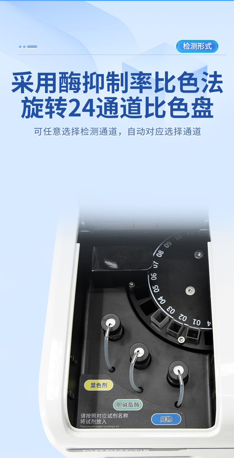 全自動農(nóng)藥殘留檢測儀是依據(jù)國家標(biāo)準(zhǔn)方法(GB/T5009.199-2003),采用酶抑制率比色法對水果、蔬菜等農(nóng)產(chǎn)品中有機(jī)磷和氨基甲酸酯類農(nóng)藥含量進(jìn)行快速準(zhǔn)確的檢測。該設(shè)備廣泛應(yīng)用于蔬菜批發(fā)市場、超市、商場、食藥監(jiān)等部門的蔬菜和水果中的農(nóng)藥殘留檢測。