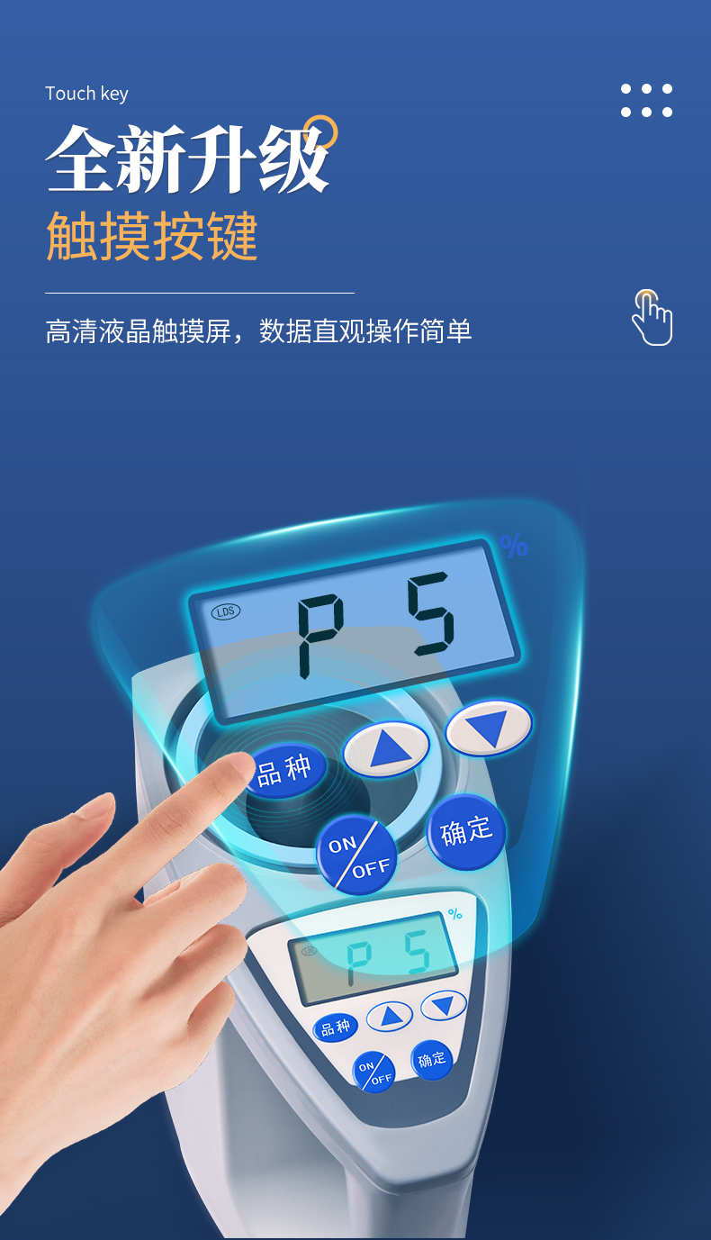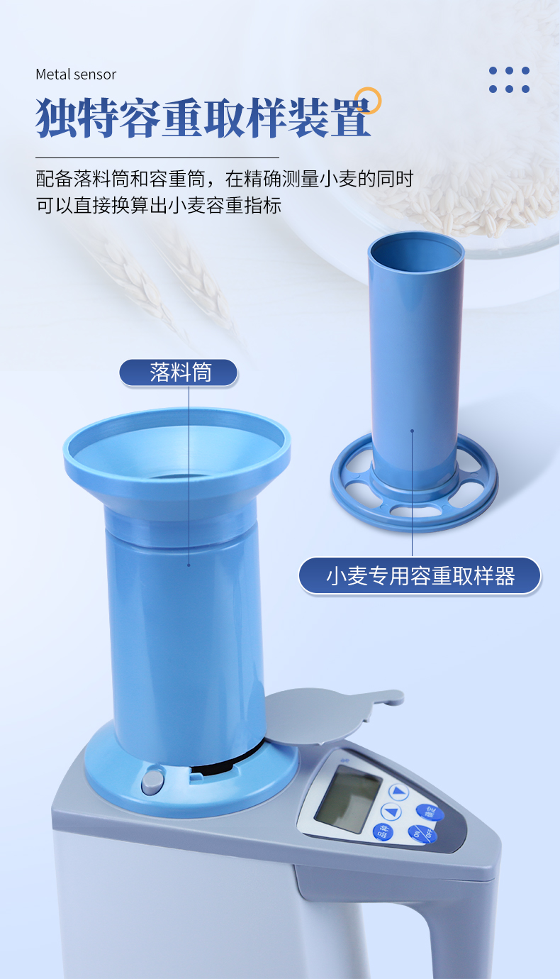 糧食水分測定儀獨特的專利容重取樣裝置在**測量小麥的同時,可以直接換算出小麥容重指標。 熱線:133-7109-8225