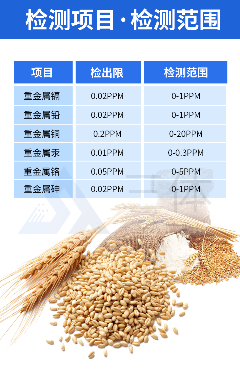 食品重金屬檢測設(shè)備廣泛應(yīng)用于大米、糧谷、果品、蔬菜、藥材、水質(zhì)、水產(chǎn)品中重金屬鉛、鎘、六價(jià)鉻、汞、砷、鐵、鎳、鋁的快速檢測,檢測項(xiàng)目可根據(jù)客戶的需求定制。