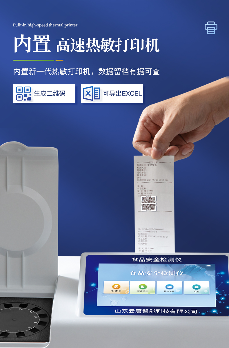 8.4、打印系統(tǒng):內(nèi)置全新打印機(jī),可以打?。喉?xiàng)目名稱,二維碼,抽樣信息、檢測(cè)信息,受檢信息、復(fù)核信息、抽樣日期、檢測(cè)日期等信息的打印。