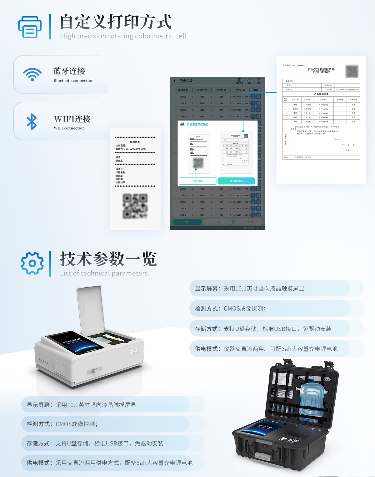 9、A4紙版本報(bào)告打印功能(可選配):設(shè)備擁有兩種結(jié)果展示方式,可以自動(dòng)生成A4打印模板和小票打印模板兩種樣式,可通過(guò)WiFi及網(wǎng)線等方式鏈接外置打印機(jī)可進(jìn)行打印