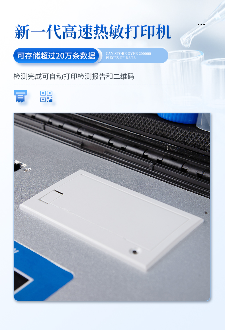3、新一代高速熱敏打印機(jī),檢測完成可自動(dòng)打印檢測報(bào)告和二維碼。